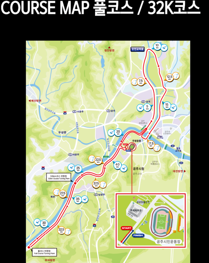 - 풀코스/32km: 금강 → 유구 방면 왕복