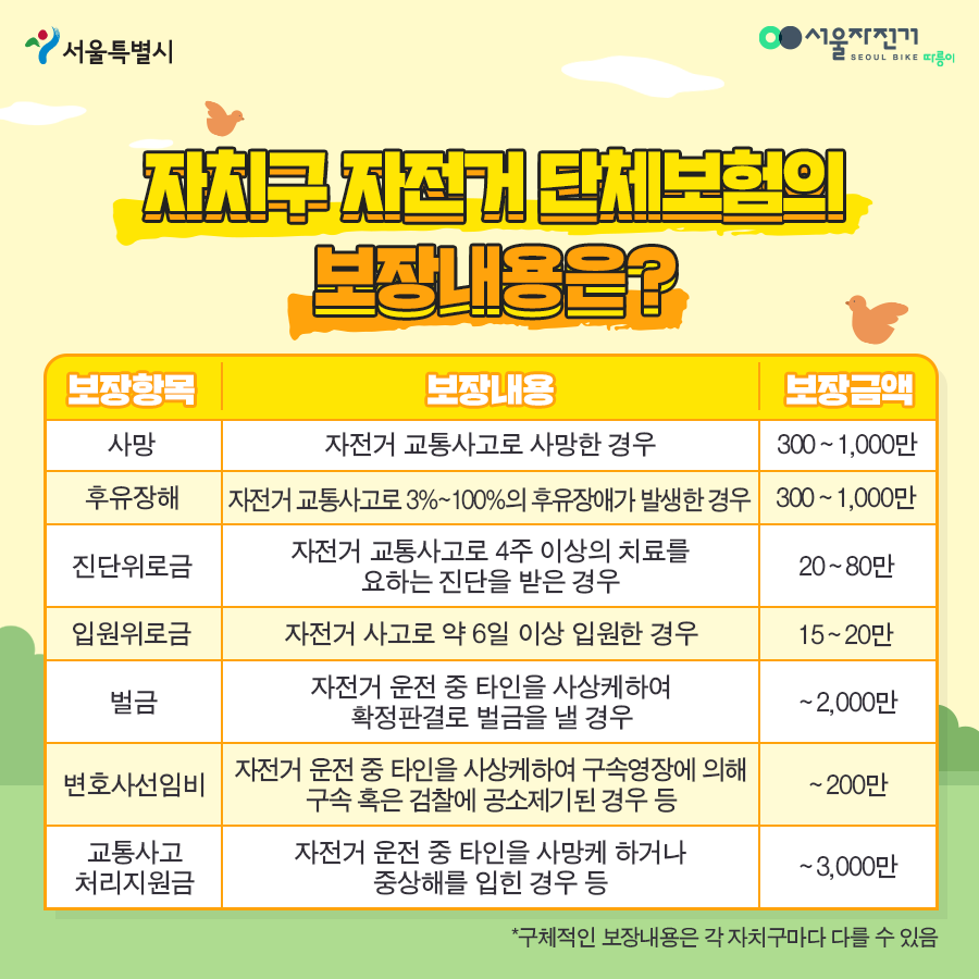 또는 지역 이름 + ‘시민 자전거 보험’으로 검색하면 대부분의 정보를 확인할 수 있습니다.