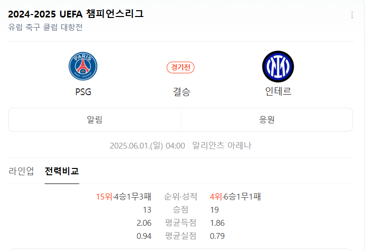 과연 조직력이 빛나는 인터 밀란이 웃을지, 개개인의 재능과 열정이 넘치는 PSG가 새로운 역사를 쓸지, 6월의 밤을 뜨겁게 달굴 빅매치를 기대해 봅니다.