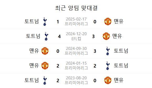 | 항목 | 토트넘 | 맨체스터 유나이티드 |