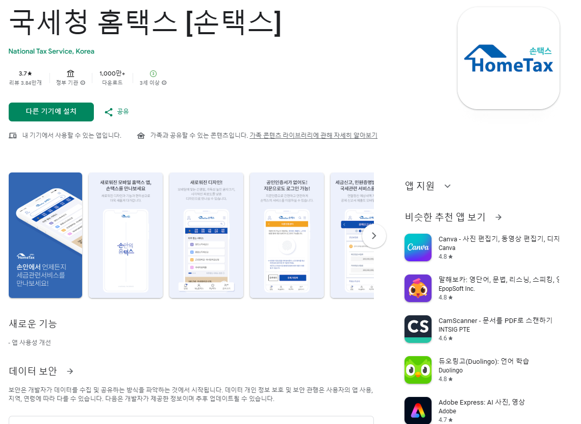 모바일 홈택스(손택스) 앱을 이용한 전자신고도 가능합니다.
