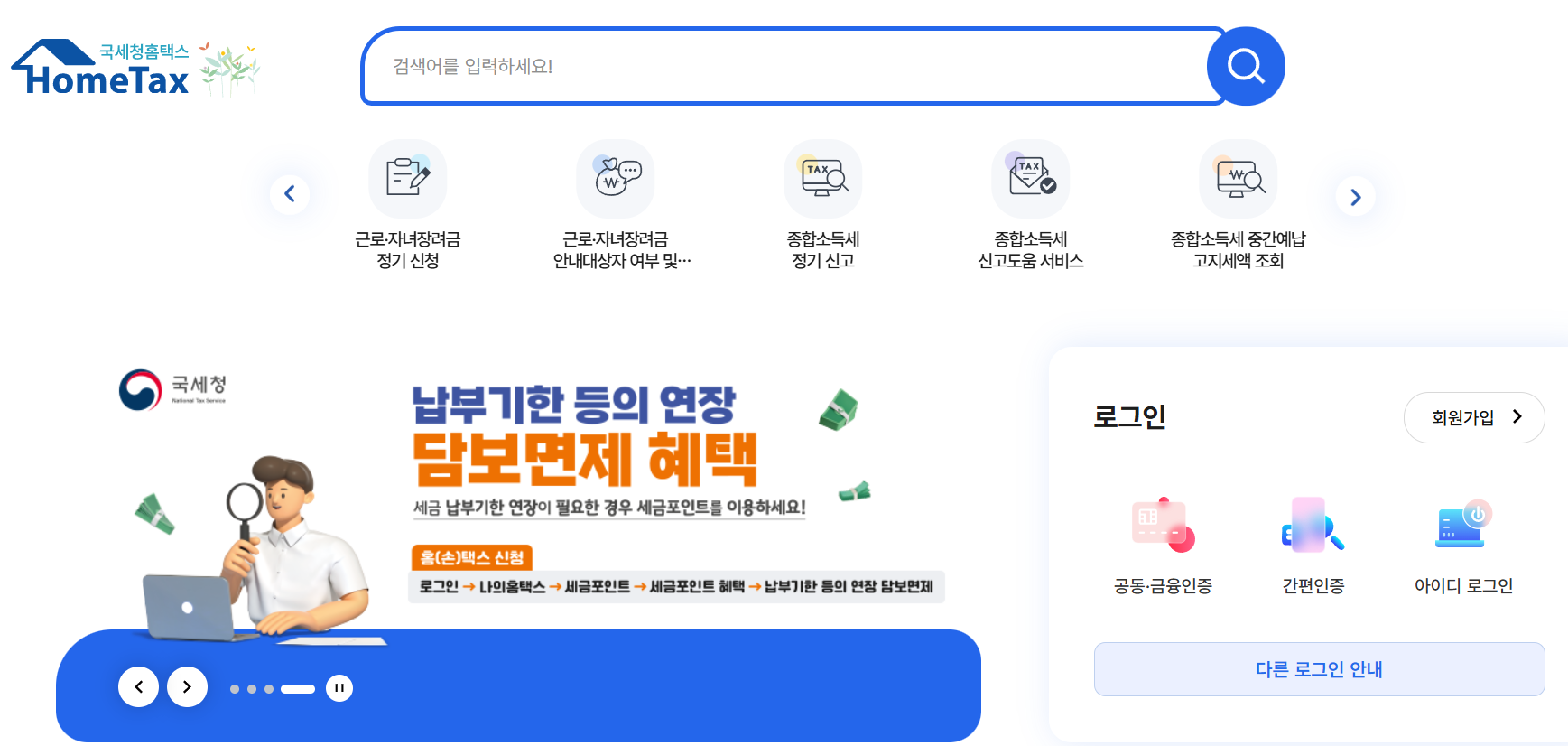 지금바로 '홈텍스'로 가서 간편하게 전자 신고하세요!!